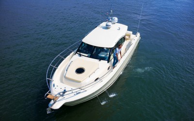 OCEANIA 45WA钓鱼艇汇聚着西班牙人的智慧与海钓经验,同时又融合了休闲游艇所秉承的高雅舒适。OCEANIA 45WA 设计非常大气与巧妙,独特的流线造型,足够大的钓鱼平台,钓鱼设施齐全,配有活鱼舱、冷藏舱、鱼竿插座、切鱼台等等,前甲板和后甲板可以自由穿梭,甲板四周都可以安全舒适地进行垂钓。室内配有多功能沙龙休闲区、独立大床房、衣柜、浴室、热水器、酒柜、冰箱、微波炉 等等应有尽有。