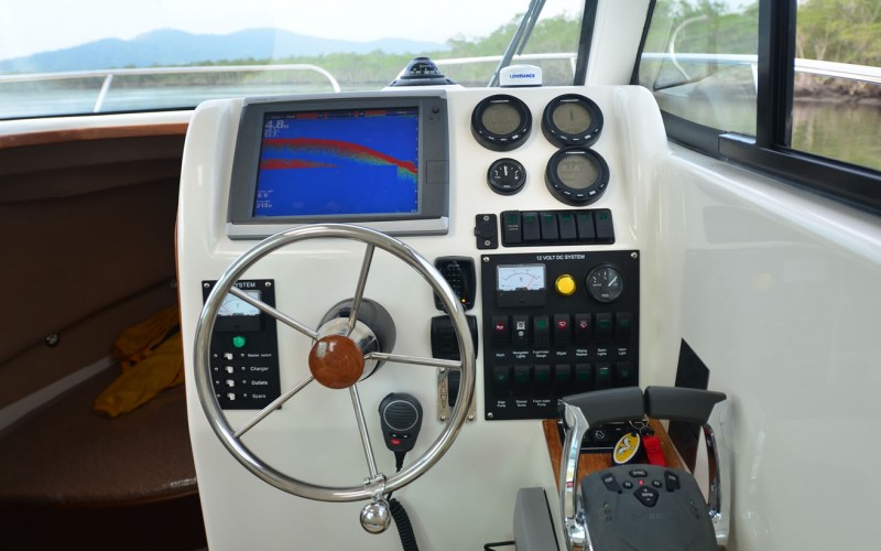 风靡欧美的新型豪华钓鱼艇,先进的船体设计,航行性能特别优越,稳定性好,抗风浪性极强,前甲板与后甲板可自由穿梭走动,宽敞的尾甲板同时配备多个鱼竿插座、活鱼舱、储物舱以及可方便折叠的沙发座椅,可供8人同时垂钓,室内配有沙龙式驾驶舱、卫生间、双人大床以及冰箱、厨台、酒柜等配置一应俱全,舒适的休闲钓鱼空间和高雅整洁的舱室可让您尽情享受游玩与钓鱼的乐趣。