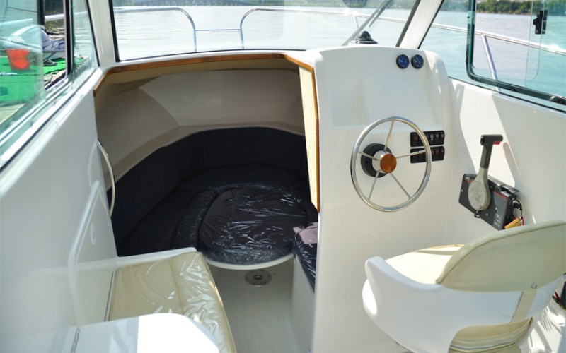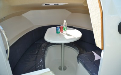 There is ample seating throughout the 21C including a folding transom seat, helm seat, a molded bench seat in the starboard side of the wheelhouse and comfortable U-shaped lounge in forward cabin that converts into a berth. The forward cabin can also be equipped with a portable or electric toilet with a holding tank.